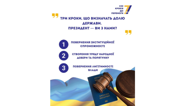 Наша мета — створити інструмент для втілення волі народу. Для цього створений Народний референдум на якому обговорюємо і приймаємо ініціативи, обов'язкові для виконання Урядом і Верховною радою України. 7 кроків до перемоги — є першою такою ініціативою на платформі для створення справжнього Народного Плану Перемоги без якого неможливе подальше існування країни.